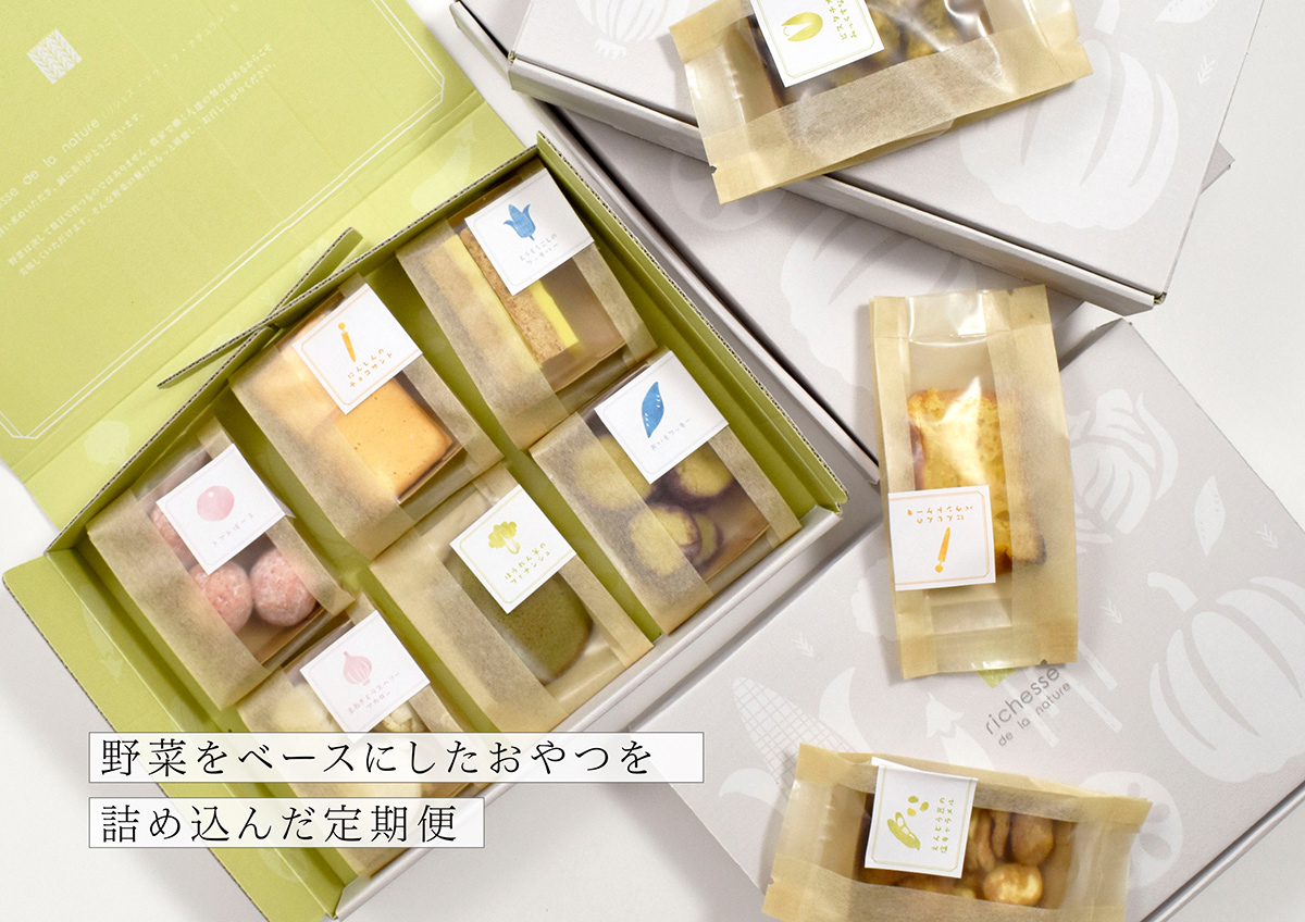 野菜をベースにしたおやつ、リシェス・ドゥ・ラ・ナチュラルは野菜好きの人もスイーツ好きの人も食べた後罪悪感なく楽しく食べる時間を感じられます。20半ばのダイエットをしているが甘いものを食べたい女性をターゲットとし野菜の甘さを生かして作った体にやさしいおやつが定期的に届くサブスクリプションです。野菜チップから、焼き菓子、ナッツといった色んな種類の野菜おやつから食べきりサイズおやつを5つお届けします。